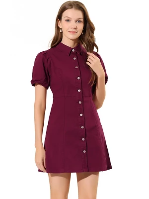 - Turn-down Collar, Puff Short Sleeves with Elastic Cuffs