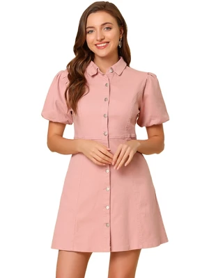 This shirt dress is cut from stretchy denim and meant to be worn for every fun day on your agenda. This sweet a-line dress has a denim construction that shapes the collared and vintage puff sleeves. A set of princess seams frame the full button placket that spans from the bodice to the mini hem. Pair this cutie with your fave plimsolls for the cutest casual style!