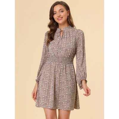 - Smock Waist, Above Knee Length, A-Line, Casual Mini Dress