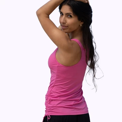 The Maya Swim Top is perfect for a sunny day. The round neckline, racerback cut and built-in bra offer stylish comfort and support while the adjustable side ruching gives you a better fit. Sold as top only. Pair with your favorite swim bottom to complete the look.