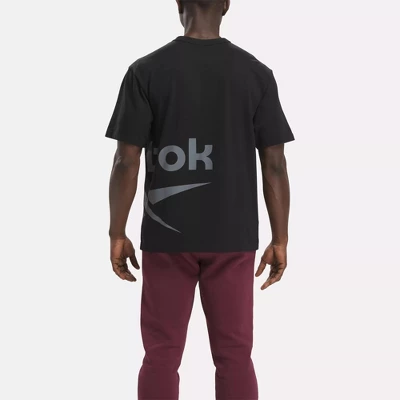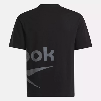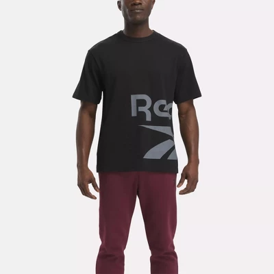Rock a classic Reebok look on rest day or any day. This graphic t-shirt is made of cotton jersey for a comfortable feel. A big Vector graphic wraps around the side for a sporty vibe.