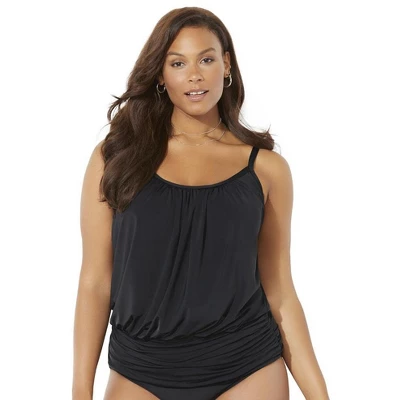 Go with the flow in our light and breezy blouson tankini top! This easy-to-wear style has a relaxed fit and is expertly designed with a built-in shelf bra for comfortable support at the beach, the pool and everywhere the sun takes you. Pair this blouson beauty with any of our fit-to-flatter swim bottoms to create the suit of your dreams.