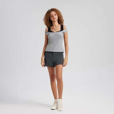 This tank top is an everyday pal with a small twist to it: the top front has a minimal ruch detail for spicing up simplicity. This gray/black combo is so versatile, it is up to the wearer’s imagination to style it to one’s heart content. This back to the 90’s twin-pack is made with an eco friendly recycled material.