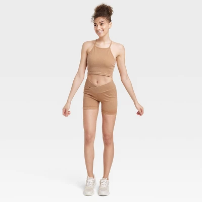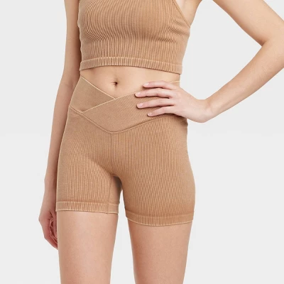 These Cross Waistband Bike Shorts from JoyLab™ in a solid color make a versatile pick in your activewear wardrobe. Fashioned with ribbed texture, these high-rise shorts feature a seamless athletic fit to give you a flattering, fitted look. The wide cross waistband with a pull-on design offers a secure and easy fit, while the soft, stretchy material gives you comfortable movement through any activity. Pair them with a range of sports tanks and tees to create many styling options.