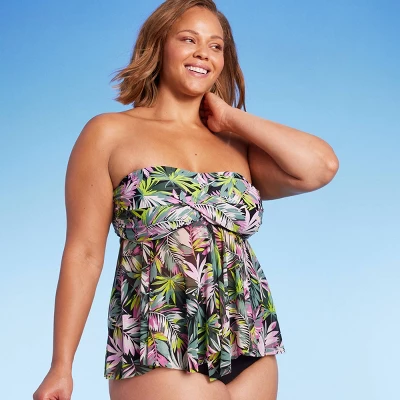 Create a refreshing look for beach or poolside fun by wearing the Flyaway Bandeau Tankini Top from Kona Sol™. This bandeau tankini top is covered with multicolored floral print for an eye-catching look that’s perfect for beach vacations or just relaxing by the beach or pool. Made with a mix of soft and stretchy fabric with soft lining, this printed tankini top helps keep you comfortable throughout the watery fun, and it comes with detachable straps with a behind-the neck tie for an adjustable fit. Plus, sewn-in cups offer comfortable coverage. Simply pair it with a floral print or solid-colored swim bottom to create a complete, chic look.