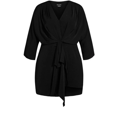 Redefine the little black dress in the Whirlpool Dress. Pairing clean-cut lines with a form-flattering silhouette, this dress features a deep V-neckline, long sleeves and a slouchy front style. Bring some glam to this dress by pairing it with a statement necklace.City Chic is a premium plus size brand specializing in the perfect fit for sizes 12 – 24